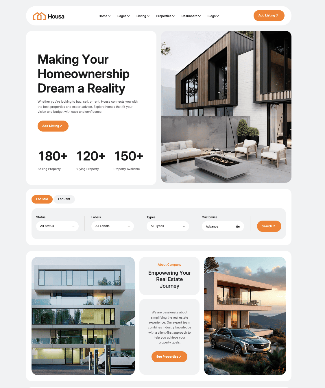 Housa is a powerful Laravel-based real estate management system with multilingual support. It offers customizable homepages, detailed property listings, and an integrated blog, providing a seamless experience for developers and users alike.